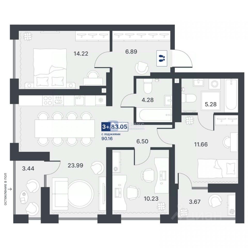Звоните прямо сейчас и узнайте подробности о квартире новостройке на 13 этаже 13 этажного дома! Уютные 3 комнаты площадью 83.05 кв.м. с кухней 23.99 кв.м. ждут своих новых владельцев.