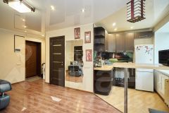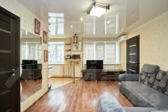 Стены оформлены современными обоями, на полах выполнен звукоизоляционный слой системы КНАУФ(безопасная, минеральная шумоизоляция), уложен качественный ламинат. Натяжные потолки добавляют изысканности и создают атмосферу уюта и тепла.