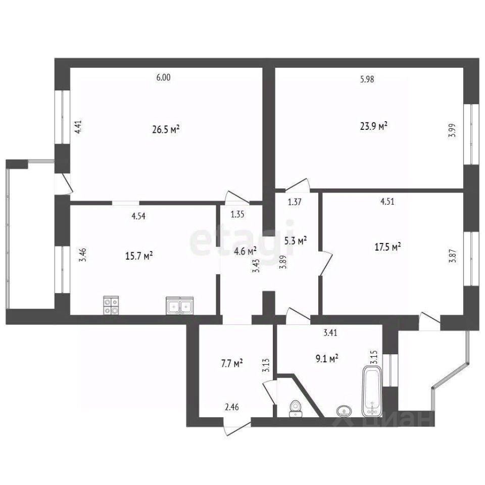 Трехкомнатная квартира площадью 111,6 м² расположена в кирпичном доме 6-го микрорайона — одном из самых благоустроенных районов города. Прочные кирпичные стены обеспечивают высокую шумоизоляцию и энергоэффективность, что особенно заметно в межсезонье. Планировка продумана для комфортного проживания: изолированные комнаты позволяют организовать пространство под нужды семьи или работы, а кухня 25 м² легко вмещает обеденную группу и всю необходимую технику. Высота потолков усиливает ощущение простора, а совмещенный санузел с качественной плиткой и импортной сантехникой соответствует современным стандартам.