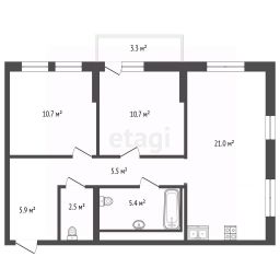 Двухкомнатную квартиру 64,75 кв.м. в центре города, от застройщика- "Брусника". Выдача ключей 4 квартал 2025 года.