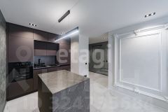 5. Встроенная мебель и кухня от фабрики Хайтэк. Кухня хоть и компактная, но очень вместительная много мест для хранения. Функциональный остров. Фурнитура Blum. Изготовленная на заказ дорогая тонкая панель, которую использовали в качестве рамки самой кухни и столешницы острова, для придания легкой, стильной формы и не выглядело громоздко.