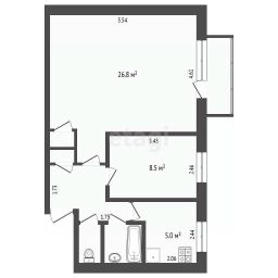 Гостиная: 26,8 м²