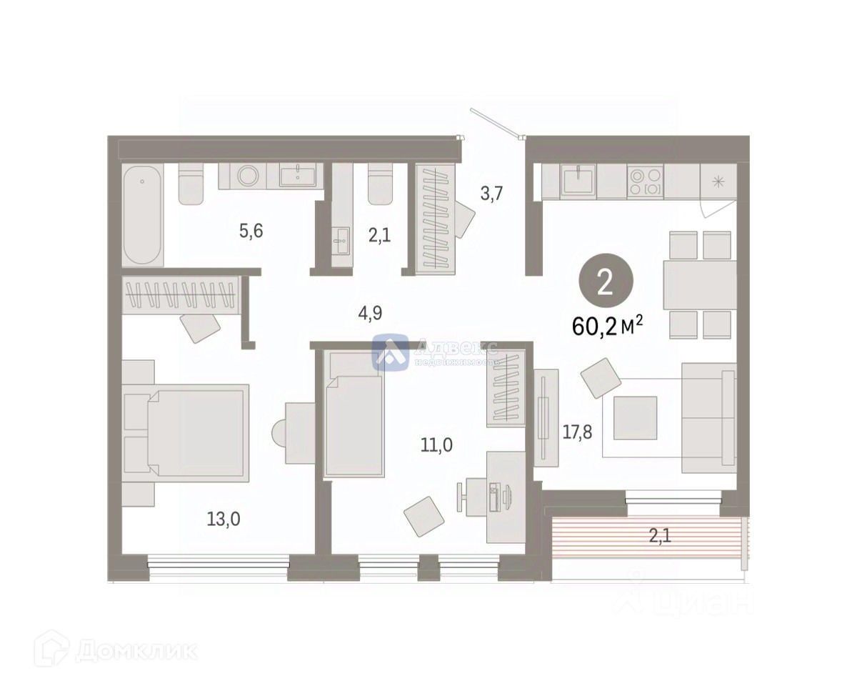 Продается двухкомнатная квартира в новостройке на 9 этаже 9-этажного дома. Общая площадь квартиры составляет 60.22 кв.м., а кухня - 17.8 кв.м. Это идеальное предложение для тех, кому важен комфорт и удобство.