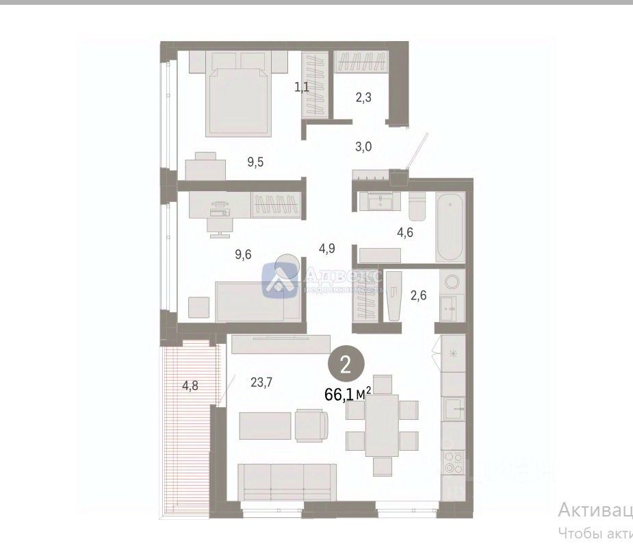 Предлагаем вашему вниманию просторную 2-комнатную квартиру в новом доме на 9 этаже, общей площадью 66.13 кв.м. Кухня занимает 23.7 кв.м. Это идеальный вариант для тех, кому важен комфорт и удобство.