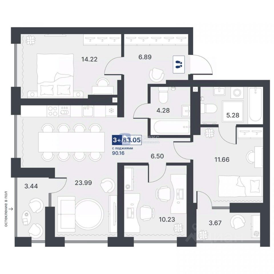 Продаётся уютная и просторная 3-комнатная квартира в новом доме, на 11 этаже 13-этажного здания. Общая площадь квартиры составляет 83.05 квадратных метра, из них на кухню приходится 23.99 квадратных метра. Это идеальный вариант для тех, кому важен комфорт и удобство.