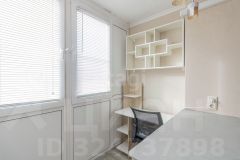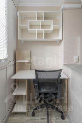 Квартира меблирована диваном, компьютерным столом и полками, что обеспечивает дополнительное удобство.