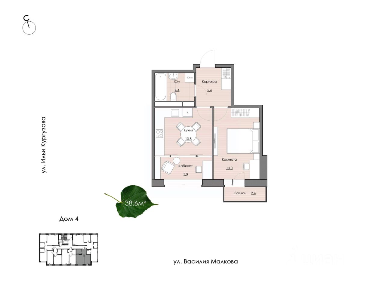 Однокомнатная квартира с видом на современный микрорайон Комарово-парк