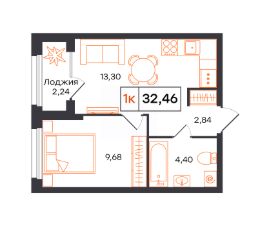 Продаётся 1-комнатная квартира в строящемся доме (Корпус 4Б (Полевая, д. 117, корпус 13)), срок сдачи: IV-кв. 2026, общей площадью 32.46 кв.м., на 22 этаже. Новый жилой комплекс "Фатера" от Специализированного застройщика "Рубин" расположен по адресу: г. Тюмень, по ул. Полевая.