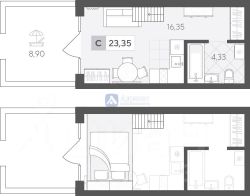 Площадь квартиры составляет 29.58 квадратных метра, что идеально подойдет для одного или двух человек. Квартира расположена на первом этаже, что обеспечивает легкий доступ к жилищу.