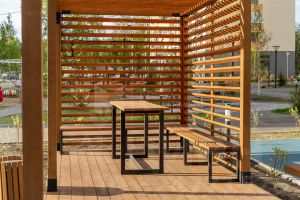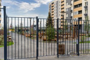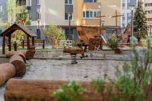 Во дворе расположены современные детские и спортивные площадки, изготовленные из натуральных и экологичных материалов.