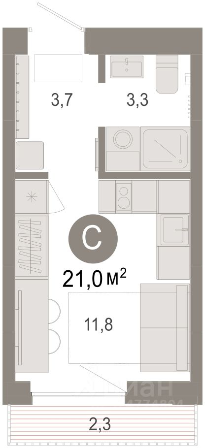 Студия в Октябрьском на Туре. Особенности планировки: предчистовая отделка.