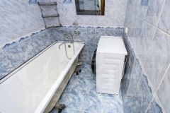 Санузел раздельный. Стены и пол выложены плиткой, потолки -подвесные пластиковые панели со встроенными светильниками. В 2024 произведена замена смесителя в ванной комнате, установлен новый кран для подключения стиральной машины, в туалетной комнате произведена замена счётчиков и разводка под новый водонагреватель для использования в период летних отключений горячей воды.