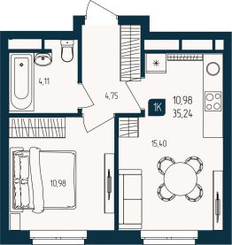 Продаётся 1-комнатная квартира в строящемся доме (Дом Каскад (ГП-2)), срок сдачи: III-кв. 2027, общей площадью 35.24 кв.м., на 6 этаже. Новый жилой комплекс "Квартал Мятный" от Специализированного застройщика "Юпитер" расположен по адресу: г. Тюмень по ул. Кулибина.