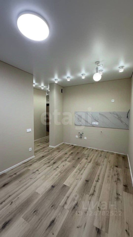 Выполнен современный ремонт в спокойных тонах с использованием качественных материалов. На полу кварц винил, стены выровнены и окрашены, натяжной потолок с установленными светодиодными осветительными приборами.