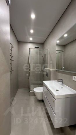 В ванной теплый пол, душевая кабина и тумба под раковину . На балконе уложен керамогранит с функцией теплого пола и натяжной потолком.