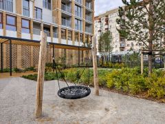 Все летние помещения имеют прозрачные металлические ограждения, открывая виды на озеро и город. Приватность обеспечивается за счет высотности. "Дом у озера" является продолжением "Европейского квартала". Он расположен в центральной части Зареки.