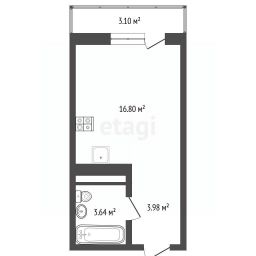 В квартире очень удобная и многофункциональная планировка, сделано грамотное зонирование: просторная кухня-гостиная (16.8 м²), где достаточно места для организации как зоны отдыха, так и рабочего пространства, совмещенный санузел (3.64 м²) и лоджия (3.10 м²)!