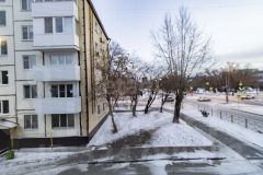 Квартира с косметическим ремонтом, все окна пластиковые, балкон застеклен, железная входная дверь. Жилая комната просторная, 19,8 кв м, очень светлая, с двумя окнами на две стороны. Два окна выходят во двор. При продаже частично остается мебель