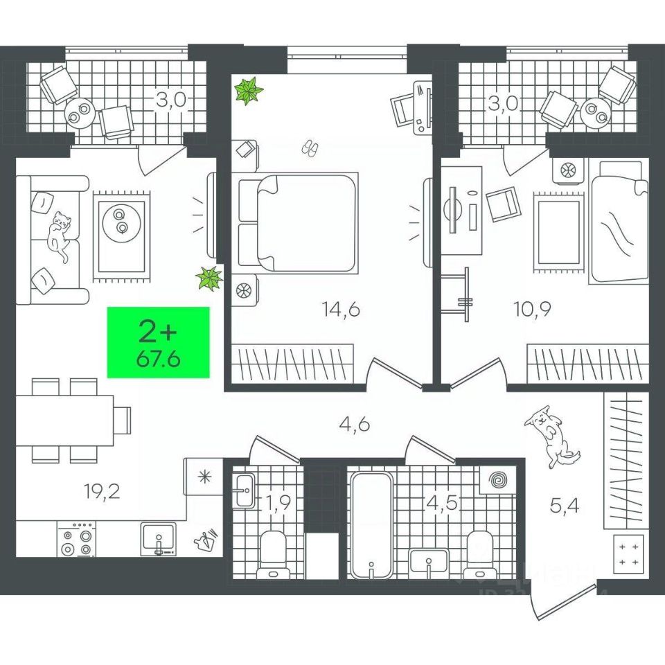 Продаётся 2-комнатная квартира в строящемся доме (1-Д3.2 (Глебова, 10)), срок сдачи: III-кв. 2026, общей площадью 67.6 кв.м., на 15 этаже. Компания 4D приступила к строительству нового жилого комплекса "Гранд квартал". Новый ЖК находится в зеленой зоне Калининского района, южнее микрорайона Тюменская слобода.