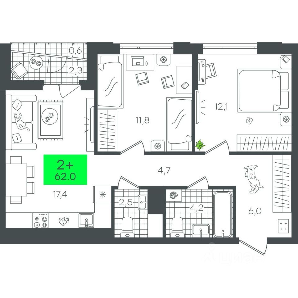 Продаётся 2-комнатная квартира в строящемся доме (1-Д3.1 (Глебова, 10)), срок сдачи: III-кв. 2026, общей площадью 62.02 кв.м., на 10 этаже. Компания 4D приступила к строительству нового жилого комплекса "Гранд квартал". Новый ЖК находится в зеленой зоне Калининского района, южнее микрорайона Тюменская слобода.