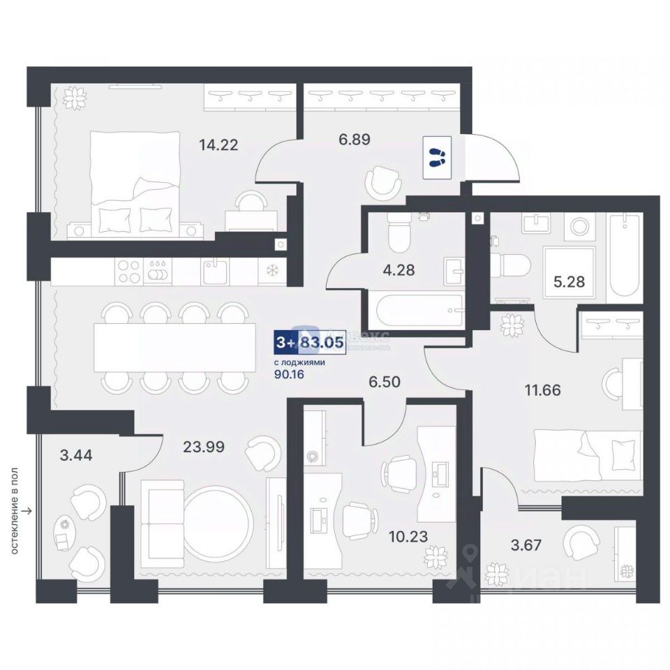 Предлагаем к продаже уютную 3-комнатную квартиру площадью 83.05 кв.м. на 4 этаже 13-этажного дома. Это отличное предложение для тех, кому важен комфорт и удобство в комбинации с доступной ценой.