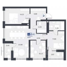 Квартира находится в новом доме с прекрасным видом из окон. Все помещения имеют распределение по оптимальной планировке, а кухня площадью 23.99 кв.м. позволит вам организовать уютное пространство для приготовления пищи и отдыха.