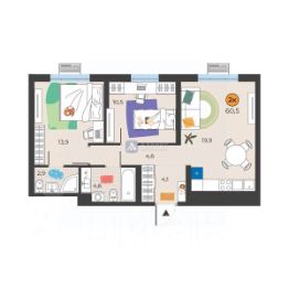 Продается уютная 2-комнатная квартира в новостройке, общей площадью 60.50 кв.м. Удобная планировка с просторной кухней площадью 19,9 кв.м. Квартира находится в здании с современным дизайном и отличным качеством строительства.