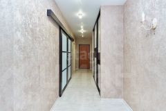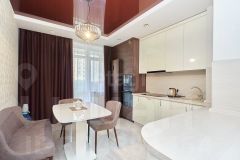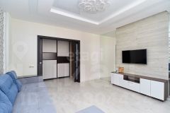 В квартире сделан современный ремонт. На стенах обои в светлых тонах. На полу ламинат 33 класса светлый дуб. Потолки в спальне,кухне и гостиной комбинированые: гибсокартон с натяжными. Межкомнатные двери в алюминевом профиле со вставкой белое стекло.
