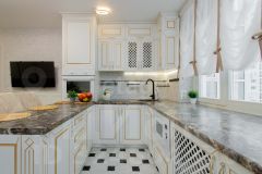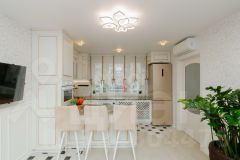 В квартире выполнена функциональная перепланировка, благодаря которой образовалась просторная кухня-столовая площадью 19 кв.м. Она удобно разделяет две спальни: одну площадью 10 кв.м и вторую 19 кв.м. Это создает комфортное пространство для жизни и отдыха.
