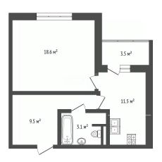 Квартира формата 1+ — просторная кухня-гостиная и полноценная спальня.