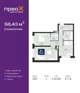 Общая площадь58,43 м²
