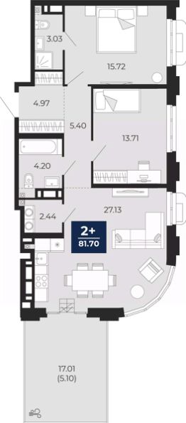 Просторная 2-комн. квартира с предчистовой отделкой в ЖК "Айвазовский City" на 10 этаже. Общая площадь: 81.7 кв.м., жилая: 29.43 кв.м., площадь просторной кухни-столовой: 27.13 кв.м. Квартира угловая, идеально подойдет любителям тишины и панорамных видов. В квартире один балкон, два совмещенных санузла. Терраса представляет собой роскошную зону отдыха, где вы на свой вкус можете создать атмосферу комфорта и уюта. Высота потолков 2.7 м.