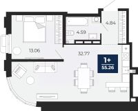 1-комн. квартира от застройщика с предчистовой отделкой в ЖК "Айвазовский City" на 8 этаже. Общая площадь: 55.26 кв.м., жилая: 13.06 кв.м., площадь просторной кухни-столовой: 32.77 кв.м. Квартира угловая, очень светлая, естественная вентиляция при открытии окон. В квартире один совмещенный санузел. Высота потолков 2.7 м.