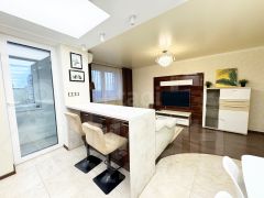 Уважаемые Покупатели! Продается 3к квартира с просторной кухней-гостинной, одна спальня и одна детская комната, рассчитанная на двух детей. Центральная часть города - Жилой Комплекс Новин. Площадь квартиры 78,5 м2 (по факту - площадь больше). В квартире выполнен качественный современный ремонт из дорогих материалов. Полы покрыты высококачественным ламинатом. Керамогранит на полу входной зоны, единственной лоджии и обеденной зоны. Вмонтирован в пол электроподогрев. Потолки большей частью натяжные, современные межкомнатные двери из массива. Остается кухонный гарнитур со всей встроенной и не встроенной техникой, вся мебель, телевизор, машина -автомат, кондиционер и т.д. В общем всё что показано на фото и видео. Проект "Новин" разработан совместно с международным архитектурным бюро ahr (они проектировали небоскребы в Дубае, аэропорт в Гонконге, участвовали в реконструкции морского порта в Сочи и штаб-квартиры кинокомпании Lucasfilm). Особенность комплекса: закрытый двор без машин, комплексная система видеонаблюдения и круглосуточная охрана, прозрачные двери подъезда, домофон внутри подъезда, парковки по внешнему периметру двора, подземный теплый паркинг (прямо с уровня паркинга работают лифты), во дворе вместо асфальта уложена брусчатка, установлено спортивное и игровое оборудование, есть велодорожки и зоны отдыха. Квартал расположен на пересечении улиц 50 лет Октября и Одесской, отсюда легко добраться до любого района Тюмени. В шаговой доступности — школа 7 гимназии 12, 16, университеты - Тюменский государственный университет (Тюмгу), Тюменский индустриальный университет (туи), детские сады 58, 90, 100, 101, Областная клиническая больница 2, Гипермаркет Магнит, супермаркеты и аптеки, рестораны и салоны красоты, шиномонтаж и автомойки. Особенности жилья: вход в подьезд на уровне земли, без ступеней, в квартирах видеодомофоны, на первых этажах расположены помещения для колясок и велосипедов, понятная навигация поможет гостям пройти до квартиры, в квартире выделена зона под гардеробную комнату, теплая лоджия остеклена, остекление окон пятикамерным пластиковым стеклопакетом, хорошо защищающий от внешнего шума и сохраняющий тепло, установлены финские радиаторы отопления с терморегуляторами, автоматическая телеметрия всех показаний на индивидуальные счетчики, тепла, воды, электричества и передача данных напрямую в управляющую компанию, так же на балконе установлена дренажная трасса для подключения кондиционера, установлена противопожарная сигнализация. Звоните, договоримся о встрече.