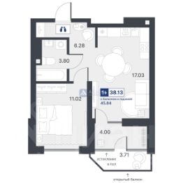 Квартира находится в новом многоэтажном доме на 8 этаже из 13. Общая площадь квартиры 38.13 кв.м., при этом кухня занимает 17.03 кв.м. Это отличное предложение для тех, кому важны комфорт и удобство.