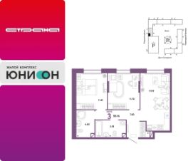 Продается 3комнатная квартира на 4 этаже от застройщика Страна Девелопмент. Площадь квартиры 58,16 кв. м.