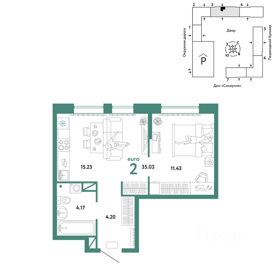 Продается 2комнатная квартира на 12 этаже от застройщика Страна Девелопмент. Площадь квартиры 35,03 кв. м.