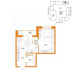 Продается 1комнатная квартира на 9 этаже от застройщика Страна Девелопмент. Площадь квартиры 37,48 кв. м.