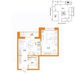 Продается 1комнатная квартира на 15 этаже от застройщика Страна Девелопмент. Площадь квартиры 37,39 кв. м.