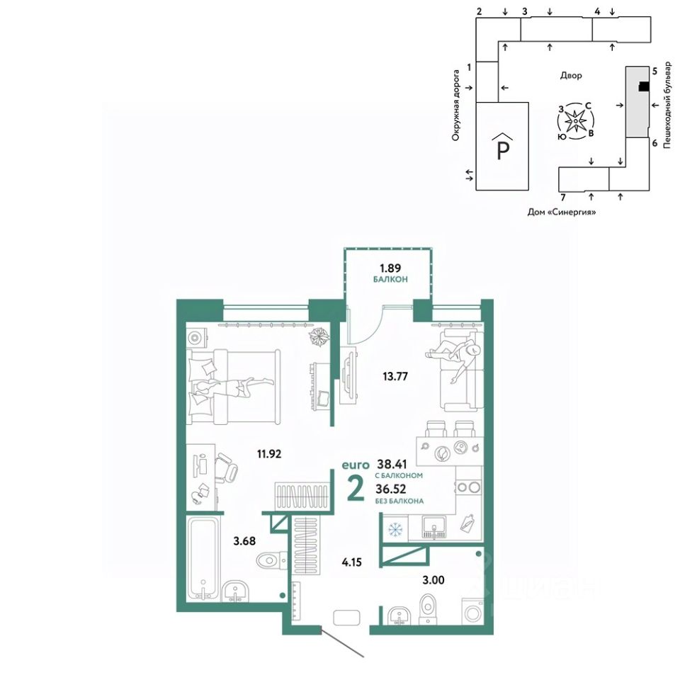 Продается 2комнатная квартира на 3 этаже от застройщика Страна Девелопмент. Площадь квартиры 38,41 кв. м.