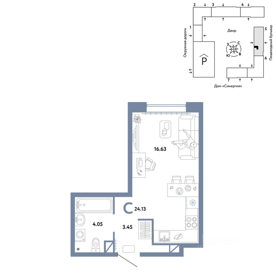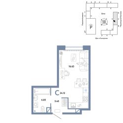 Продается студия на 6 этаже от застройщика Страна Девелопмент. Площадь квартиры 24,13 кв. м.