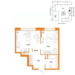 Продается 1комнатная квартира на 11 этаже от застройщика Страна Девелопмент. Площадь квартиры 36,9 кв. м.