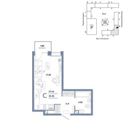 Продается студия на 3 этаже от застройщика Страна Девелопмент. Площадь квартиры 27,44 кв. м.