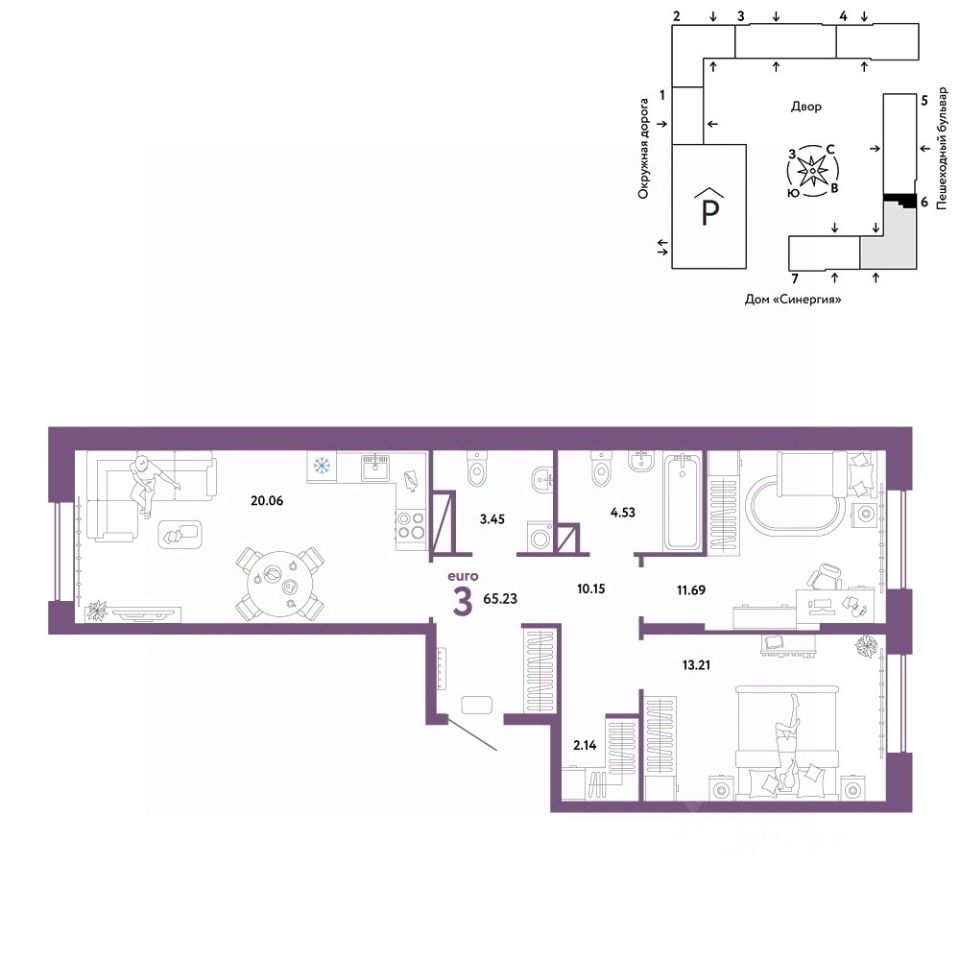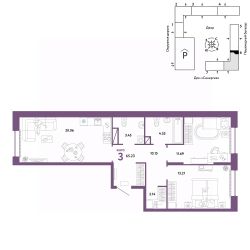 Продается 3комнатная квартира на 7 этаже от застройщика Страна Девелопмент. Площадь квартиры 65,23 кв. м.