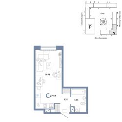Продается студия на 10 этаже от застройщика Страна Девелопмент. Площадь квартиры 27,49 кв. м.