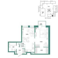 Продается 2комнатная квартира на 10 этаже от застройщика Страна Девелопмент. Площадь квартиры 47,5 кв. м.