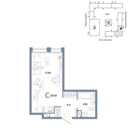 Продается студия на 12 этаже от застройщика Страна Девелопмент. Площадь квартиры 25,43 кв. м.