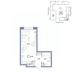 Продается студия на 12 этаже от застройщика Страна Девелопмент. Площадь квартиры 27,49 кв. м.