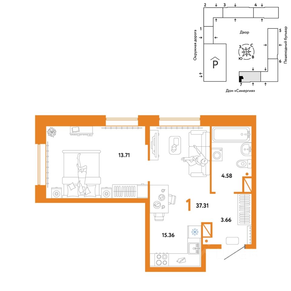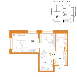 Продается 1комнатная квартира на 10 этаже от застройщика Страна Девелопмент. Площадь квартиры 37,31 кв. м.