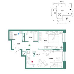 Продается 2комнатная квартира в новом ЖК "Юнион". Общая площадь квартиры 45,71 кв. м. Сдача — в 3 квартале 2024 года.